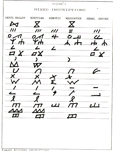We were able to decipher the Oued Mertoutek inscription, and the Minoan Linear A, Harappan writing and the Olmec script because of the Vai script (Winters 1984a,1984b,1984c). Winters (1977,1979) discovered that the Vai syllabary of 200 characters matched all the signs in the syllabaries of Crete, Olmec America, Oracle Bone writing of China and the Harappan script (Winters 1979,1983b,1983c). And that due to the genetic linguistic unity of the people who made these signs, when you gave the signs in these diverse areas, the phonetic values of the Vai signs, but read them in the Dravidian or Manding language you could read the ancient literature of Crete and the Indus Valley (Winters 1985b). Thus the syllables which retain constant phonetic values can be used by different groups to write their own languages.