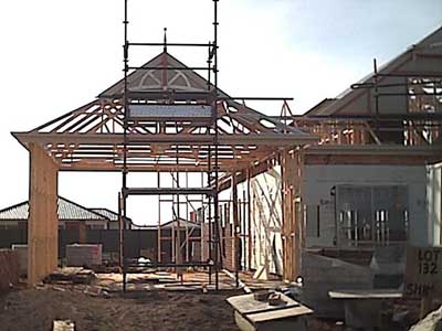 During this week (Wednesday) the roof was started and finished by the time we came to see the house on Saturday. This is what the place looks like now.