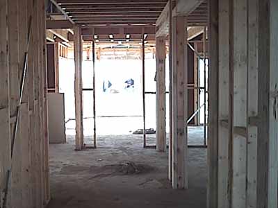 The whole western elevation is completed. You can see in the frame roof structure the outline for the upstairs rooms.