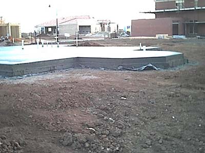 As we rounded the corner at 132 once again in the becoming-familiar way, our eyes came across another new feature. "They've poured the slab!!" Yes, from Thursday to Saturday, the whole waffle pod had been prepared. It was still cold to the touch as it cured in the fresh air.
