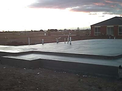Looking east across the slab to the next door neighbour's house. There is a 3.25m gap between our house and property boundary on that side.
