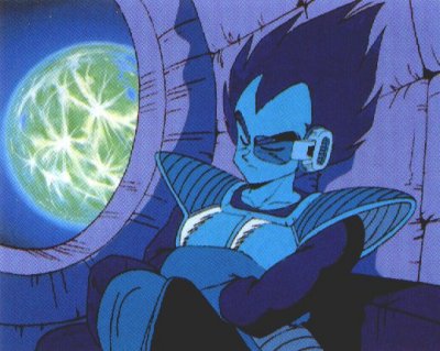 Vegeta se encuentra volando de un lado hacia otro, pues al ver la situación de la pelea, se ve obligado a buscar la luna (ya que según sus cálculos, para esta fecha debería haber luna llena), para así utilizar su poder al máximo al convertirse en mono gigante (Ozaaru). Vegeta se desespera al no poder encontrarla por ningún lado. [Kaioo-Sama explica mentalmente que tiempo atrás Piccoro la había destruído, pues cuando estaba entrenando a Gohan, éste se convitrió en Ozaaru, siendo ésta la única forma de hacerlo volver a la normalidad (destriur la luna); además también pensando en que la situación que en estos momentos se presenta podría llegar a suceder y que sería un gran peligro si la luna aún existiera]. Vegeta no puede encontrar la luna por ningún lado, y cree que Gokú fué el que la destruyó antes de que él viniese. Después de ésto, finalmente baja y le dice a Gokú que no se saldrá con la suya. Vegeta le cuenta a Gokú la forma en que los Saiyas se convierten en Ozaaru; le explica que la luna refleja los rayos del sol creando una clase de ondas llamadas "bloots o floots" (en verdad no sé como se escribe), éstas ondas sobrepasan los 17 millones cuando la luna está llena, cuando los ojos de los saiyas reciben más de 17 millones de ondas bloots (o floots), hay una reacción en en sus colas y empieza la trasformación; también dice que hay cierta clase de saiyas que pueden crear una luna artificial con las propiedades necesarias para convertirse en Ozaaru. Vegeta es uno de esos saiyas, por lo cual, forma con una de sus manos una pequeña bola de energía y la lanza hacia el cielo para que se mezclara con el oxígeno de La Tierra.
