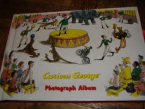 Never used, pages are made from cardboard. The frames on each page has different shapes and a drawing from "Curious George" on the bottom right corner.