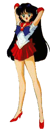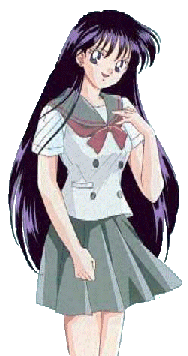 Hino Rei. Inner Senshi. The fiery courageous temple priestess. Rei is a hot tempered girl who constantly fights with Usagi, even though Usagi is one of her best friends. Rei works at her Grandfather's temple with Yuuichirou and they all live there together as well. She is known for liking to be the center of attention and leading everything around her school. In fact the people at her school look up to her and treat her almost like a goddess. ^_- Sailor Mars has regular school stuff and her wards to banish evil. Sailor Mar's Attacks Include: Fire Soul= 2d18 Fire Soul Bird=2d19 Burning Mandala=2d19 Flame Sniper=2d20 Rei's wards are also 2d18. Where 15+ is a success. A few words from the real Rei: "You just realized that?" "I don't know he's such an idiot." "Usagi no baka!" There are others...but well..er...I'm not thinking straight today -_-. Hey Rei-chan finally made her own profile too! Last but not least -_- Other than Beruche, but that's not Beruche's fault. Anywaaay, here we go: Oooh.. I get to make my very own profile thingy. Since I got a "personal invitation", I'm being nice and actually doing it, even though I was the last senshi to get a page of her own(Besides ChibiUsa, but she doesn't count ). ::mock cries:: But anyway, I'll get on with it then. ::erases some stuff and starts over:: Hi! I'm Rei, the mean sailor. ::laughs maniacally:: Not really. Kidding, honest! Scouts honor. I'm only mean to Usagi. It's in my job description, and someone has to do it. Usagi's just asking for it ^_^ ::waits to get hit by Usagi:: Seriously though, I really do like Usagi. She's been one of my best friends since, well, I became a scout. I doubted her at first, but she's proven herself many times over, even if she is lazy. But enough about Usagi, we're supposed to be talking about me . I'm the sailor from Mars and all that neat stuff. I guess you could call me the pyro sailor. Then the show wouldn't stay at a Y7 rating would it? ::shrug:: More fun facts about me. Well, I live with my grandpa in the Cherry Hill Temple, and go to a private school away from the other senshi. That about covers it I guess. So here ya go Haruka! Arigatou, Rei-chan and sorry about having your profile up so late! ::hugs:: I owe you a couple of rides on the motorcycle ^_- Our Rei-chan is played by "GargElisa" I gave Rei the same midi as Ami because...well because. ^_^; I'll upload a new one in a bit, to give at least a little more variety.