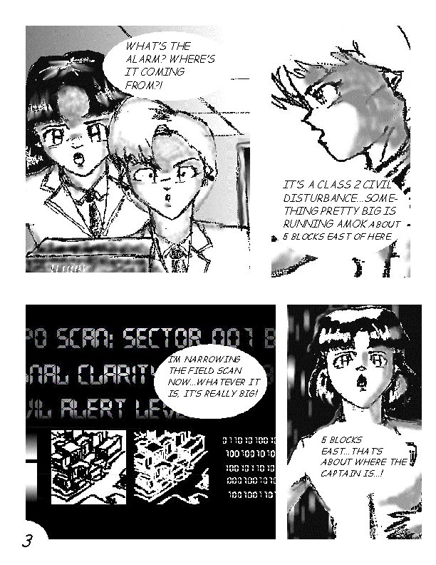 I've been reworking the character design and also the program in which the origianl art is done in. The following 2 shots are color, but I doubt I'll be doing the manga in color. Maybe, but I doubt it. Lotsa more work, and since I'm just one guy...well you get the idea. And yes, the art is rough, but as I said, I'm one guy. Here are some promo sketches of the main characters, Verity Dirac and Dana Ellison: