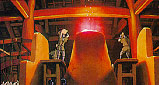 "Tatara Ba" means "Iron making place". In the English dub, it is translated as "Iron Town." A "Tatara" is a foot bellows which was used to make iron, and it also came to mean a particular process of iron making, and people who made iron using that process. In the Tatara iron making process, iron sands and charcoal are put in a furnace made of clay, and burned for several days. Then, the furnace is taken down to take an iron ingot out. In this process, a great amount of charcoal is needed to melt the iron sands, and therefore, trees are a very important resource (sometimes more than iron sands) for the Tatara people. In "Mononoke Hime", the Tatara people try to cut the forest down to keep their iron manufacturing going, and the Gods who live in the forest fight against them. Iron signifies human