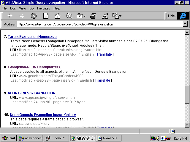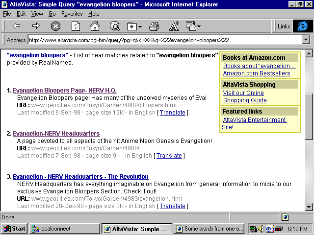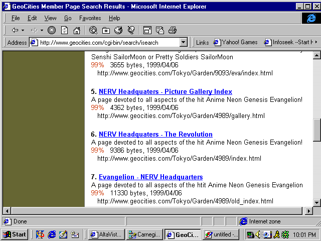 NERV HQ showed up in positions 5, 6, 7, and 8 on Geocities search for Evangelion.