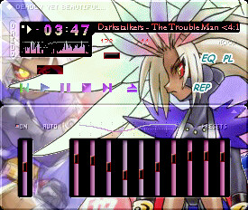 Name of Skin: Beautiful Death Skinned: eq - pl - mb - avs Rating: ![]() Wai! she did! She managed to skin the minibrowser and AVS! Still wondering why winamp gave it only a 3, hmm. Missing buttons maybe? |