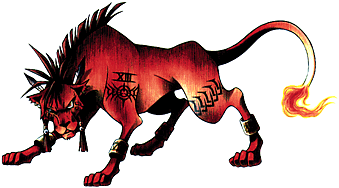 Red XIII is a ferocious beast with flaming red fur. Despite his bestial appearance, he is amazingly eloquent and fantastically intelligent - an astronomer, no less. His kind can live for hundreds of years. Conjecture: Red XIII is super-intelligent, lives for hundreds of years, and currently resides with the Shinra Corporation (as a pet). This information, coupled with his name, "Red XIII," make it seem that he is a genetic experiment of the Shinra Corporation - perhaps the thirteenth of his kind? This explanation accounts for his tattooed "serial number," intelligence, and unique appearance.