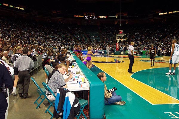 It has been awhile since I've been to a NBA game, so this was a nice treat. With a few courtside tickets, compliments of Coca-Cola, me and my friend, Joe, went off to the Hive on January 17th, 2002 to see the Charlotte Hornets play the Philadelphia 76'ers. Though the Hornets lost to the 76'ers, 93-88, they were still great seats and had a good time.