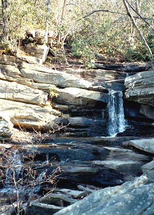 A few days later, March 1st, I traveled to Hanging Rock State Park in Stokes County. Also part of the once mighty Sauratown Mountains, it features a lot of things for the outdoors type (which I'm not). I wasn't able to get any good picture of the mountain itself (known for it's sheer cliffs and bare rock), but I did get to experience some of its trails and got a picture of one of the small waterfalls that come off this mountain. Also, some of the roads getting there (like NC 66) are more amusing than your typical roadways in the Piedmont.