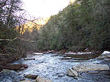 Going down NC 181 and then via NC 183 (this is a good shortcut, don't ever use the BRP if your in a hurry), I arrived in the small community of Linville Falls. Nestled on the county lines of three counties (Avery, McDowell, and Burke), it doens't have much to offer except good Bar-b-que, a 19th Century U.S. Post Office (Still Active), and a waterfall of the same name. Sadly, because I decided to visit the falls so late in the afternoon, I only had enough sunlight left to go on one of the trails to the falls. So I picked a trail I never went on before that would put me in the bottom of the Gorge. This wasn't an easy trail either, as you were either climbing up or down the mountain, not to mention that I was the only person on this trail this late in the day. But I braved it and got some nice pictures of the scenery, and even put my hands in the freezing water (I didn't drink the water though, I have heard that it is somewhat polluted... so sad). Too sum up the rest, I made it back to the visitor center as the sun set.
