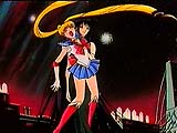 Sailor Saturn jumped into the crater where the building use to be, and Sailor Moon tried to follow. She was blasted back, but cried out "Crisis, make up!" to turn into Super Sailor Moon. Nothing happened because the Grail had been destroyed.