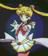 Pegasus landed on the ground and his eye sparkled. That made Sailor Moon and Chibi Moon power up to Super Sailor Moon and Super Sailor Chibi Moon. He created a new weapon for Sailor Moon, and she used her, "Moon Gorgeous Meditation!" attack and finished it off. Unazuki was released from the wall, and Hawks Eye cried out, "Oh no!", and jumped through a hole back to his dimension.