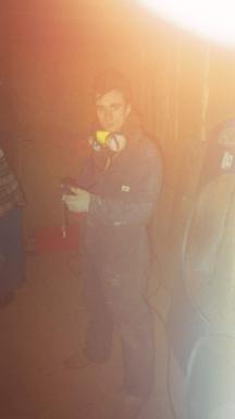 Here He is in a cemical plant during a cemical melt down In his gas mask.