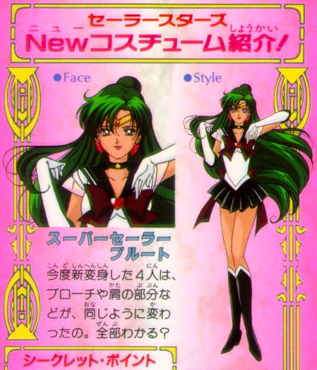 Here is one of my most favorite characters in Sailor Moon- Sailor Pluto. Well i first liked her because she really is pretty and mysterious. I still like her for that and she is my sign too- Scorpio. Let me tell you something more about her- the guardian of the door of time. She has to guard the time gate, to protect it from invasion and that makes her life so lonley...she has to stay there for life, because this is her fate, she is more than thousands years old. Her only friend before she met the Sailor Senshis was Little Lady- Chibibi Moon, who likes to call her Puu. They have a very special friendship. From all the Sailors for her is known the least, but when she appears it means that something serious is going to happen, because she only leaves the gate of time in extreme situations. Well this is Setsuna, lovely, powerful, but always alone..never to have someone to stand by her...but this is the fate of this mysterious Senshi!