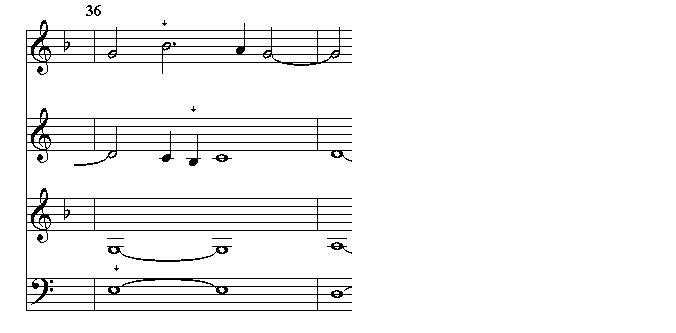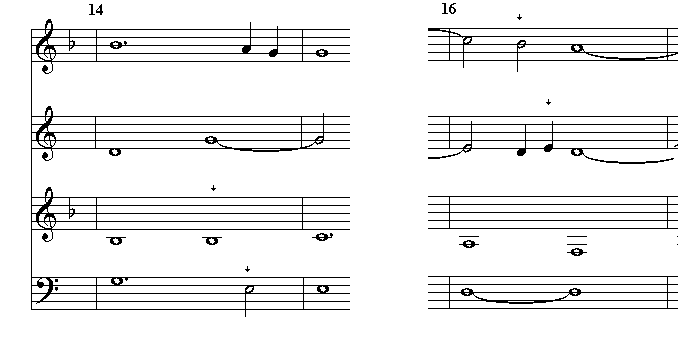 However there are left in writing only very few pieces with notation for voices a fifth apart. These include: Josquin, Cela sans plus; Mouton, En venant de Lyon; Ockeghem, Prenez sur moi; Verdelot, Dignare me laudare te and Willaert, Aspice domine and Si je ne voy m’amie.
